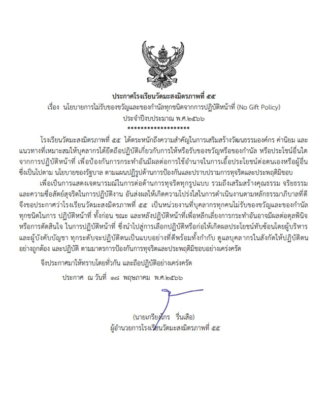 นโยบาย No Gift Policy จากการปฏิบัติหน้าที่